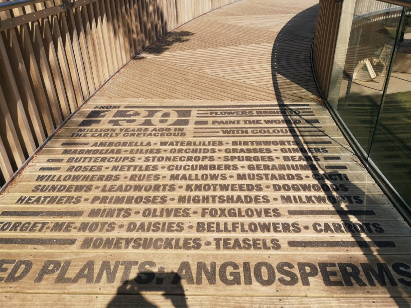 The glass houses are organised on continent lines and are totally fascinating; learning here is a real joy. Did I say learning ? Well if that’s what it is, it’s purveyed with the lightest possible touch. What I did notice in particular this time was the new rising path (opened in 2018) with the guide to the evolution of plants written on the wooden floor of the path with illustrative panels showing how to look at the plants and leading to the highest point (that would be us until our natural world gives up on us and sinks back into a sea of heedlessness, a morass of folorn hopes as well as a cruel and totally self-centred theft of the kids’ future). Looking from the top of this spiral walk you gaze over a briliantly conceived open book of nature. It was one of the first to be laid out when the Gardens were moved to the present site in 1846. It is a showcase and teaching resource to represent the Swiss botanist A. de Condolle’s descriptions of monocotyledons and dicotyledons .They now have a problem: when the book was written the taxonomy was unaided by DNA detection, now what shall they do? Keep to the author’s historical layout or organize more precisely according to current knowledge? It’s a bit of a conundrum.