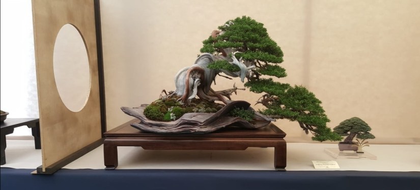 Off to Crespi’s. It was a special day: the guided tour round the museum was offered free, so we took it and Attilio showed us the intricacies of this extraordinary discipline which combines horticultural techniques and art. The extreme care they take to match the vases which are an essential part of the whole experience, to the essence. There are two different strands running through the world of bonsai. The classic stance which emphasises the “tree-ness” according to Zen ideas, or the more modern one which is not necessarily botanically correct but the artistic qualities are underlined and there is a sense of work -in- progress, an unfinished oeuvre .There’s a kind of running diatribe between bonsai buffs and the tender -hearted people who see the art as cruelty, but I believe the profound love which first caused men to miniaturize these trees in order not to be parted from them while journeying, or to take nature inside a temple, does a lot to offset this kind of criticism. The idea of family, of continuity is very strong, they are passed from father to son through the hundreds of years they live. In fact the chef d’oevre in the museum is a group of one -thousand -year-old trees.
