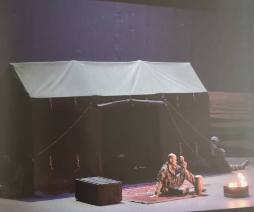The stratagems used by Robert Carsen to amuse added a very light touch to the proceedings and don’t seem at all out of place. Carsen compares the rapid scene changes to a modern cinematic work, a comparison often used when talking about Shakespeare’s rapid scene changes. But he also says that J.C is like a baroque pearl which doesn’t have a definiite form, a perfect example of impure art. We see machine guns even in the heiroglyphic wall paintings, flashes from the various film Cleopatras (so Claudette Colbert, Vivian Leigh and Liz Taylor). And we see Cleopatra in her bubble bath. In the gran finale the opening of an oil pipeline and the loading of the barrels while two participants at the peace talk take photos with their smart phones. What very often can seem forced and ridiculous, really worked here. It gave back to the opera the idea of light entertainment, humour, fun as well as seriousness. .