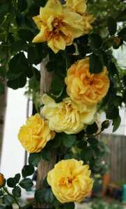 Yes, well along with everything else worthwhile: cricket, all dressed in white on the village green, bucolic!; afternoon tea with cucumber sandwiches (no crusts) and scones with raspberry jam and whipped cream; a proper breakfast with cholesterol-busting bacon, eggs beans, hash browns, fried bread; the weather with information on the best places to experience it published in magazines; messin’about in boats; beer warm and flat, not this continental joke of lager; gin and tonic which kept Elizabeth the Queen Mum alive well into her 100’s; my goodness I could go on forever , the list is endless. But I’ve just had the most terrible shock! I wanted to write about my glorious golden yellow rose and I find that it was bred ….in Germany! So after this dramatic wakeup call I decided to research the origins of my other roses. You won’t believe this! I nearly didn’t ….and they’re mine, in my garden, loved under the illusion that they are all English roses! Loved and pampered under false pretences! One is German, two are French, one is Spanish and only two are English roses! We could’ve stayed in the European Union! And I am always so careful, trying to re-create my little bit of home in my backyard! I drive the poor bulb man from Rome crazy insisting on only English bluebells, I order Spring daffodils from England, and clematis England’s second favourite flower? That too.