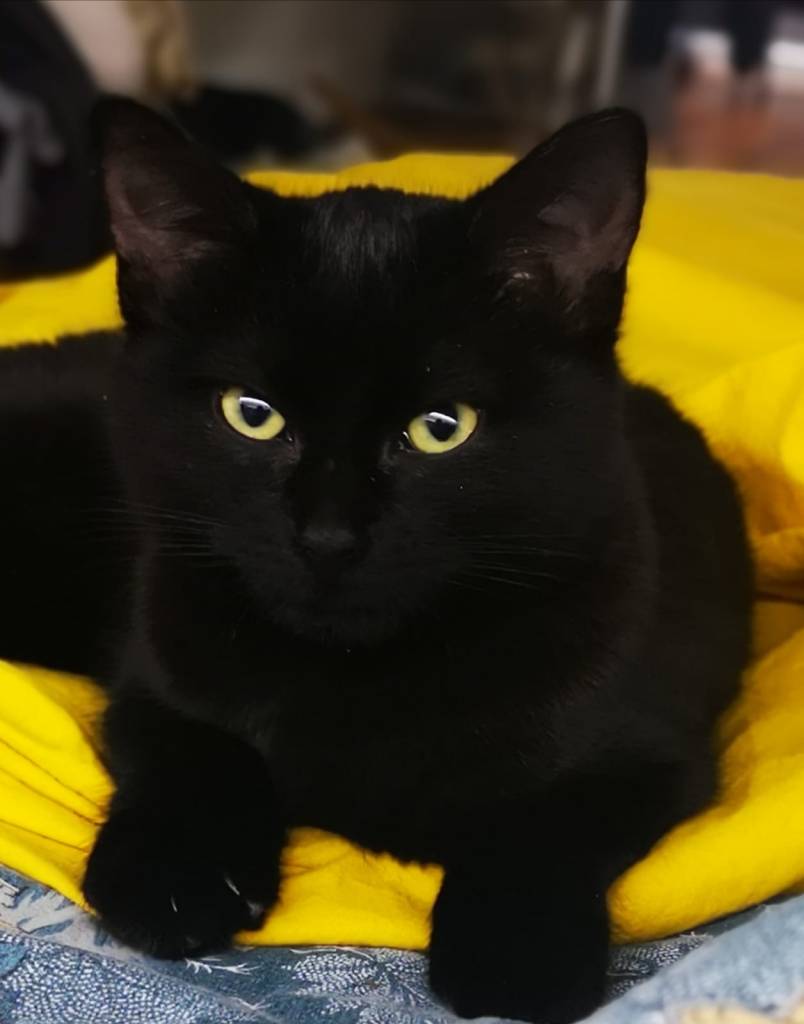 Anyway we arrived eventually and a lady and young man came to fetch me to take me to a new home and a new human.When we got there I found it easy to hide though because I’m black I think and hid away under the bed. The humans came to look for me with lights but I wasn’t coming out before I was quite sure about these people. My new human seems to have several names, Anne, and the young woman calls her mamma the young man calls her granma andthe people she talks to on her desk call her prof! What’s a kitten to think? Anne speaks to me in an unknown language, it sounds soft and nice like a lullaby but I haven’t a clue to what she means. She doesn’t seem to understand me either so I shout at her and she scurries round and tries everything! Food, water, games, grooming, litter. I think she’ll understand me in the end if I try and do the same things over and over again.