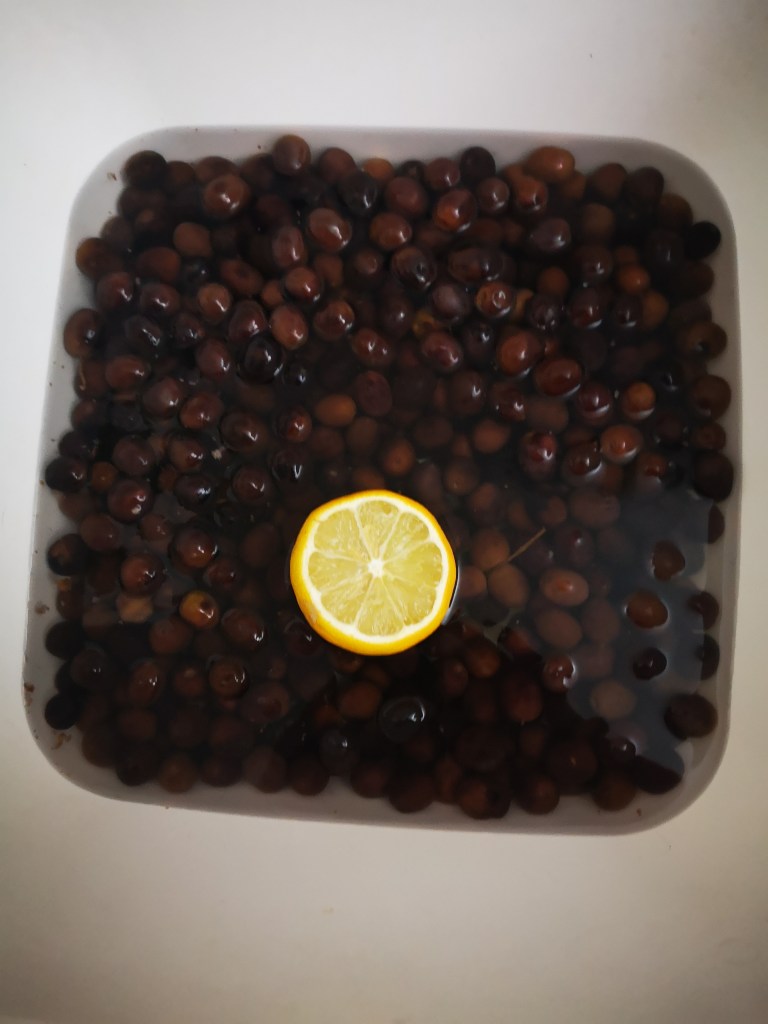 So mad searches on internet, frantic phone calls to anyone who knew anything about olives. By now it’s high drama. Then I remembered a dear friend, ex-student and chemist in the food industry. Several telephone calls and text messages later, the olives have been washed and soaked in oligomineral water with a slice of lemon for a couple of days (The lemon to protect from mould), tasted, and when found edible (not just edible actually, but pretty good) they have been put back in their jars in a new less salty brine solution, and will remain in it for the next 20 days when they will be tasted again. Fingers crossed. So now it’s very likely that there will be a new brand of lovingly hand-picked Lesmo olives which will cost the earth. That’s why I think Mr. Saclà needs to look out!