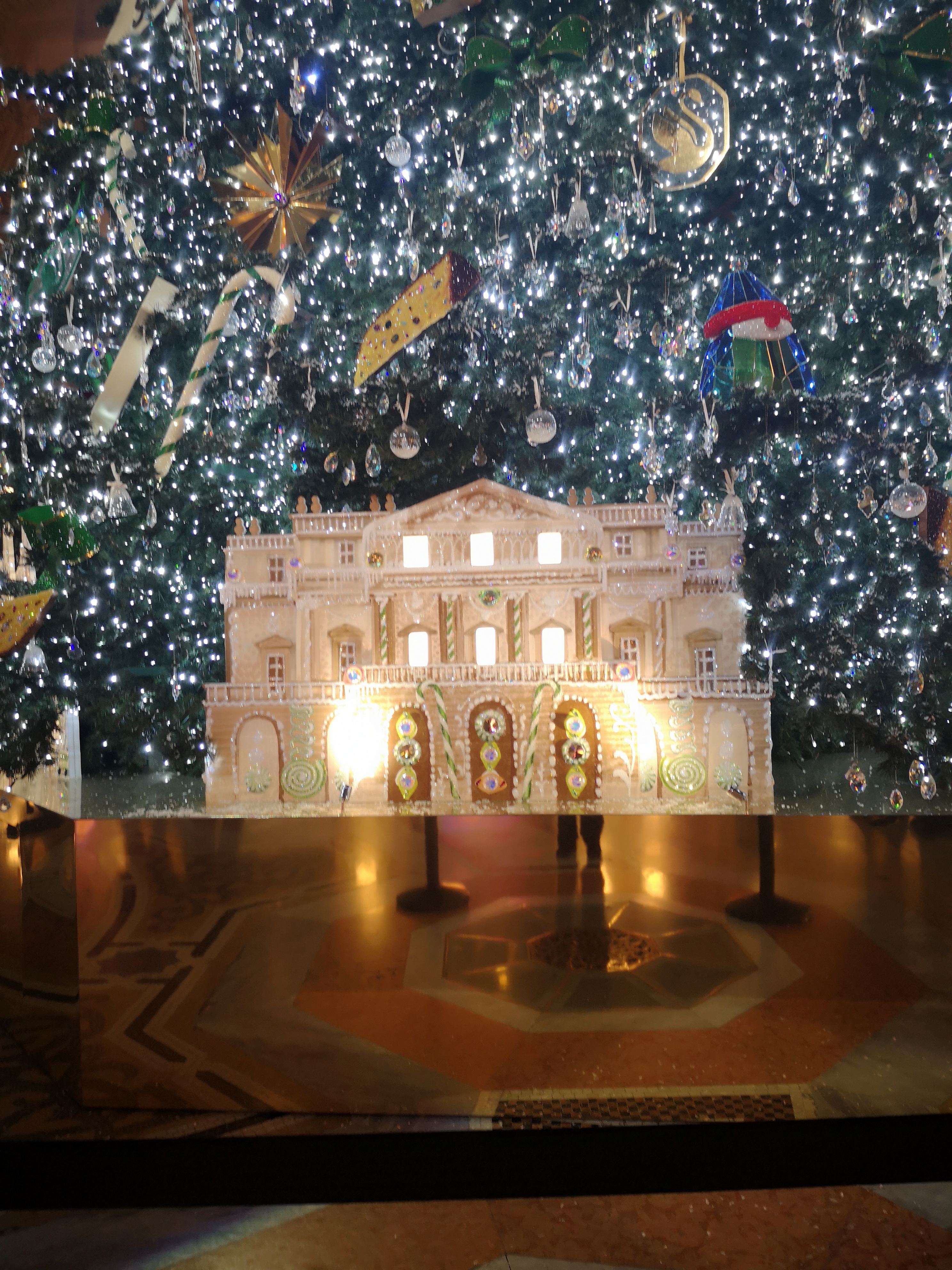 The usual feeling of breathless expectation, it’s been such a long time since we were last here , but here we go. An overture that sounds to my untrained ear very Verdiano; then the heady mixture of theatre to take in; choreography, the scenery, the unloved video projections. Got it! The orchestra under Chailly, the chorus, the singers; what can I say? They had slipped into their roles and were confident and in great voice, better than on First Night I was told. In fact the appreciative audience interrupted after every aria which doesn’t always happen. Obviously the stars were incredible, but I also liked the choreography (by Daniel Ezralow), I found it very meaningful, a representation of all that was rotten in Macbeth’s world; but at the same time I perceived it as a possible comment on modern-day haters while the witches were obviously purveyors of fake news . The controversial videos might have been too much for people who have problems with flashing lights but they symbolised the hallucinatory world of supersition and ambition, or perhaps the world order crashing about his ears I felt. A quick look at the marvellous decorations in the Galleria before making tracks home. Could we be getting back to normality?