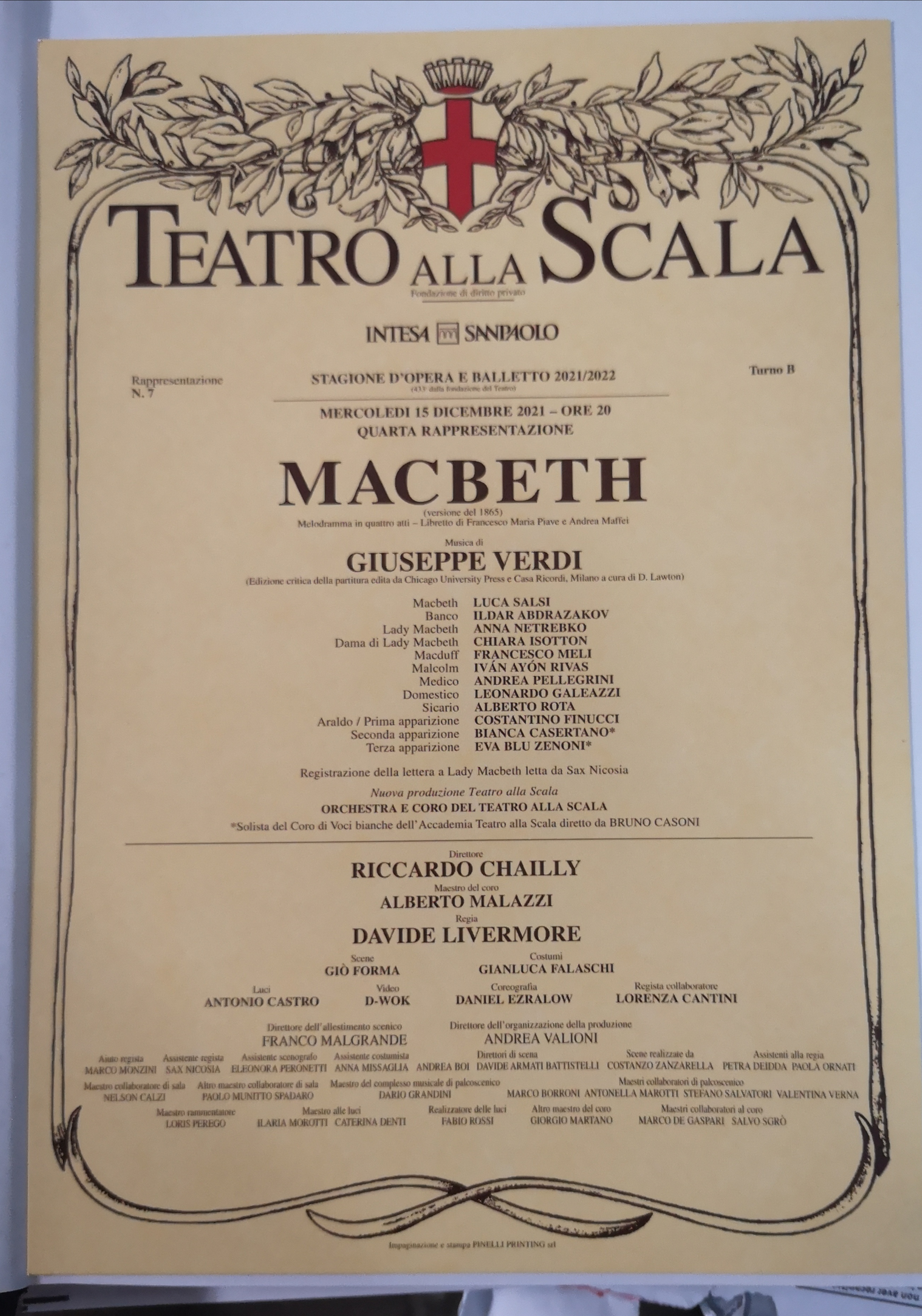 We finally made it. At long last we got our season tickets from la Scala and were looking forward to Macbeth with childish enthusiasm. Then? A strike, yes a full- blown nationwide transport strike. (Weeping and gnashing of teeth) Sometimes you just don’t luck out! We were not even sure about the day either but in the end IT WAS ON .