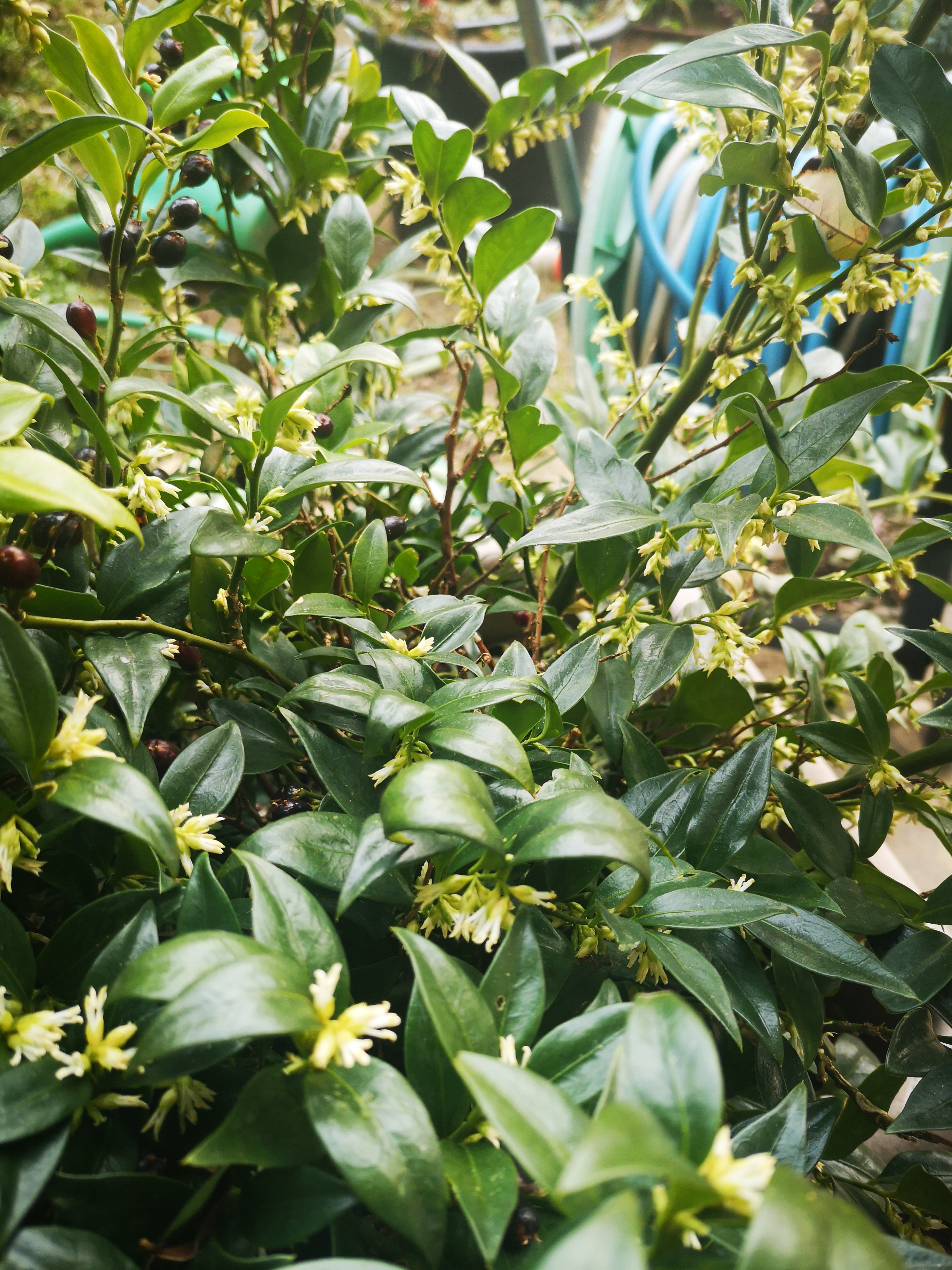 I’ve also started combing through my “What happens each month, what to do each month”books. And I decided to put together a combination of the expert advice, the only problem with THAT brilliant idea is that I got a really long list of things”to do in January”.My idea had been to take out a book, sit in a sunny place near the Sarcococca (moved especially for this purpose) and just breathe in the inebriating perfume! Instead I find myself on my knees scratching about among the leaves which are supposed to suppress the weeds. It’s a gardener’s eternal mystery why weeds can get through ANY barrier you present them with.