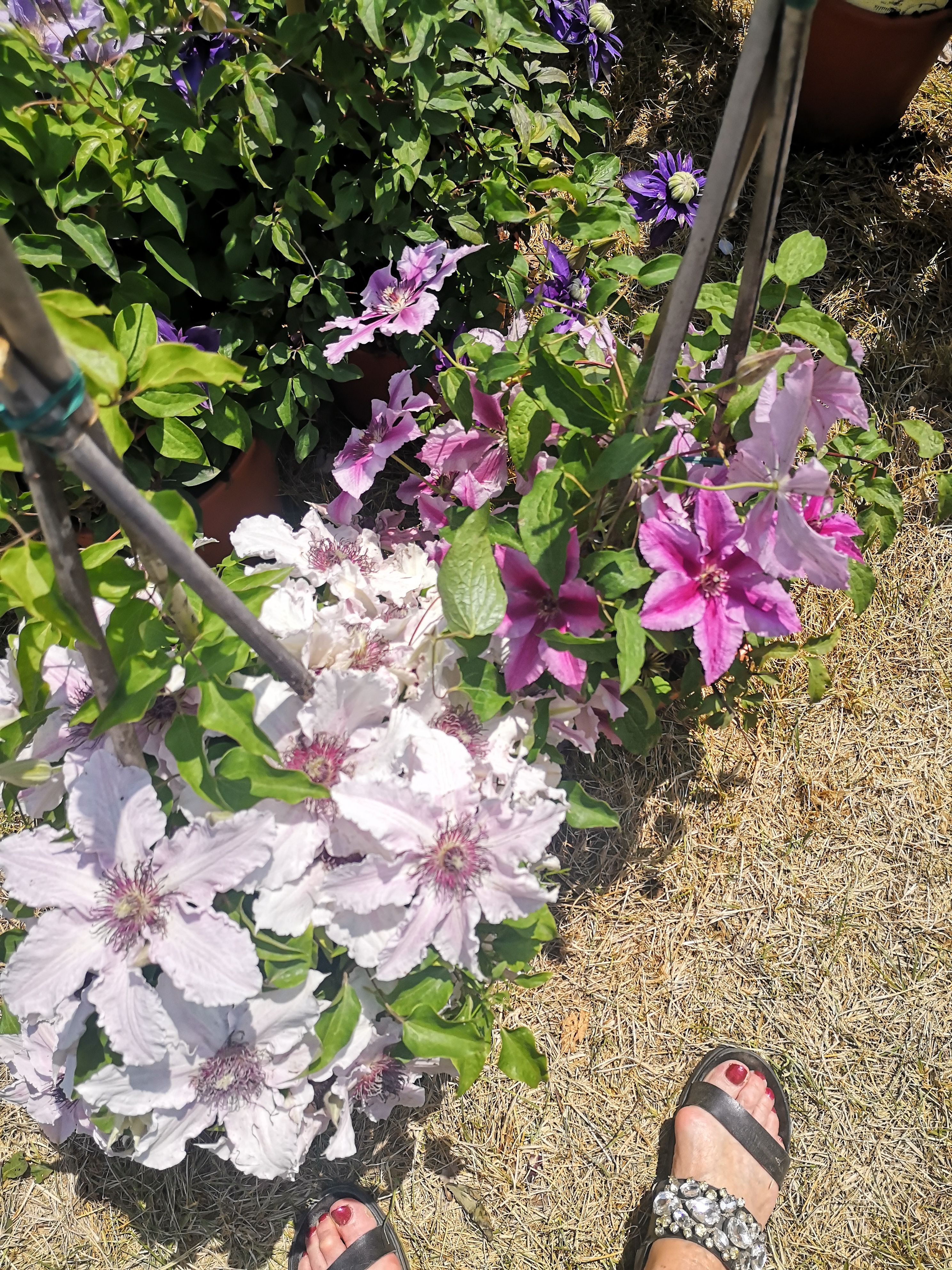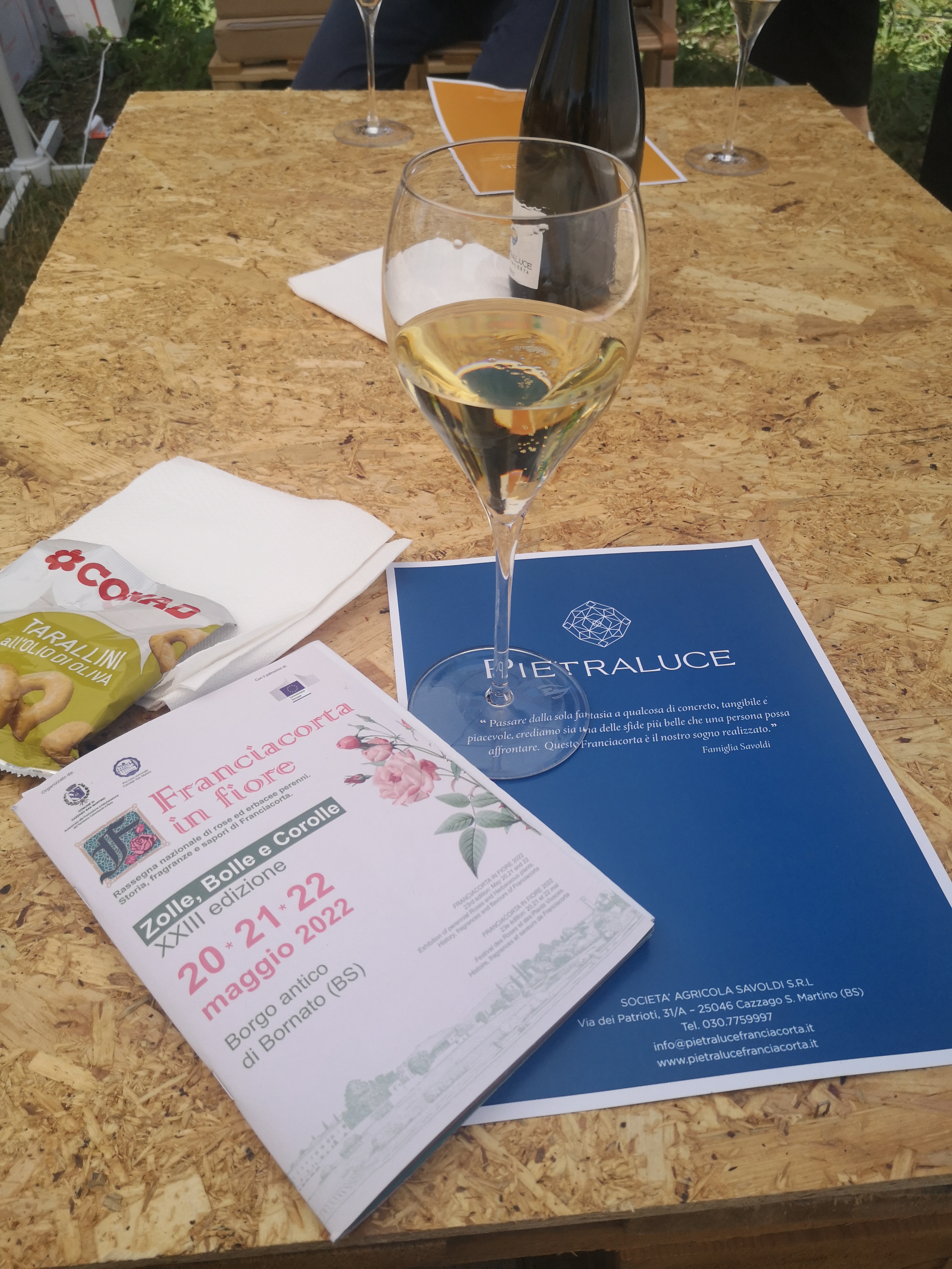 I Decided to give Franciacorte a try. It was lovely driving through the vineyards, and although I am one of the lucky ones of this world and have never been hungry, the feeling of comfort and happiness when you see well-tended fields must be an atavic pleasure…. Parking was a bit of a problem, but by scraping the walls of a building……. I took the wrong road first and reached a blocked gate just in time to hear a rousing rendition of Fratelli d’Italia by a local brass band. The first thing I really noticed which I had never seen before was the cheese and salame “da passeggio”, which you nibble while you’re walking, just as if it were an ice cream. Then the first wine tasting – delicious. Interesting conversation too. But of course conversation is always better ….lubricated. I must try it in my lessons next year! I walked round admiring the good exhibits, especially the enormous space occupied by the guy from Lucca, hydrangeas , clematis and roses galore. Through the villa gardens and more wine tasting: this time a rosĆ© which was more orange than rosĆ© and too strong for my liking. Summer rosĆ©s should have a similar alcoholic content to a cup of tea, after all that’s what you’re substituting. I sat next to a secret garden in the cool shade wondering how long it would take for the alcohol to wear off! The Villa was decorated with incredible paper flowers, you really had to touch them to be convinced they were not real! there was a mini exhibition of bonsai from a private source, they were incredibly beautiful. After a final walk round (I bought some red flowered strawberries and some mad carnations. (Mad because they have straggly petals and look as if they need a hairdresser) And when it was time to drive home I got a volunteer youngster to accompamy me to my car with a wheelbarrow, Yet another opportunity to chat.