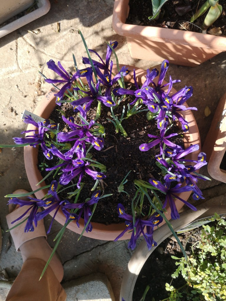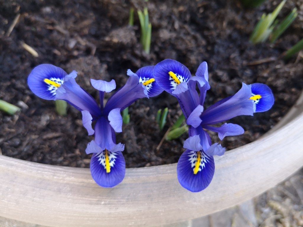 No, no, not those kind of blues! Quite the opposite in fact. At the very beginning of the year the tiny irises appeared, as they always do, surprisingly. You walk round the garden and there’s nothing there; the very next day these miniature navy blue flowers are startlingly open.