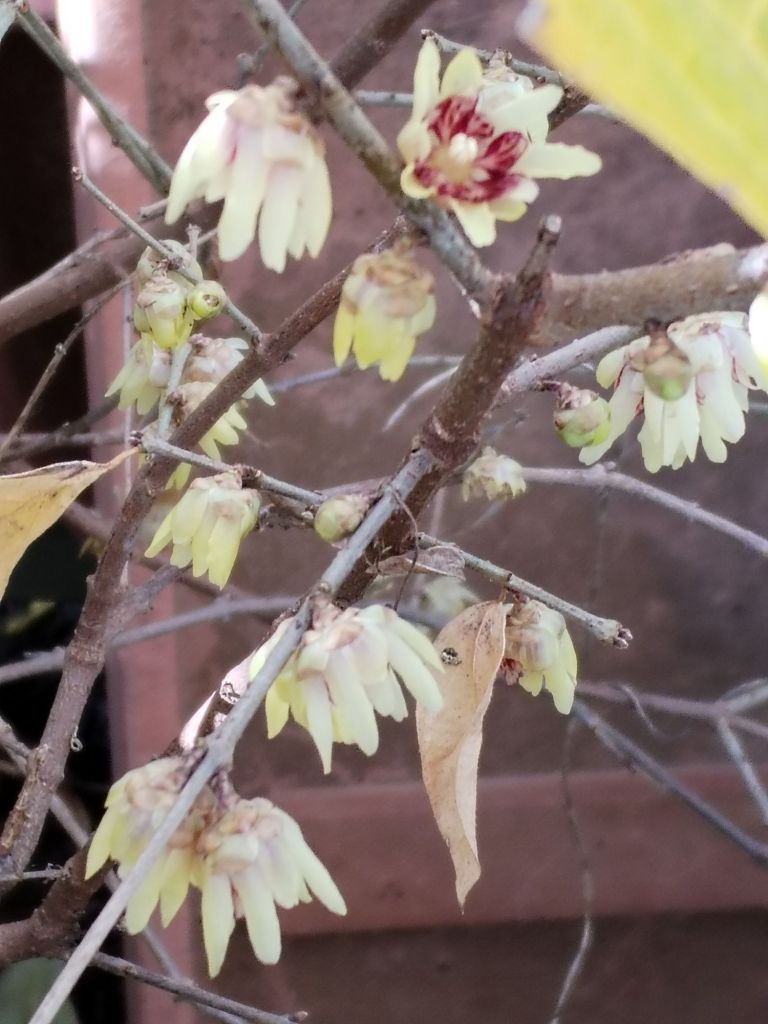 When I worked in Milan I would sometimes walk past one of those high walls which people seem to love; Ive nevr quite understood why privacy is so protected. I’m thinking of the bungalows in Brianza surrounded by high walls and comparing them to English houses with (mostly) beautiul gardens ondisplay and a low wall that you can chat to your neighbour over. I think it’s marvellous to peek into peoples gardens and share a little bit of green, but no, they’ve got the Fort Knox syndrome. Anyway, sometimes you would get this tantalising whiff of glorious perfume (you can’t lock a perfume in) and because of those walls you could never be quite sure where it was coming from. It was of course ,the Winter Sweet a small tree, fairly inconspicuous with straggly branches and modest flowers, but my goodness the perfum! So eventually I managed to buy this dream plant Chimonanthus (Winter flower) praecox (very early) descriptive if you will but its common English name Winrter Sweet beats that mouthfull for sheer poetry.
